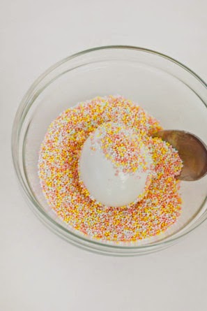 Place in glitter bowl. Using a spoon, cover egg on all sides.